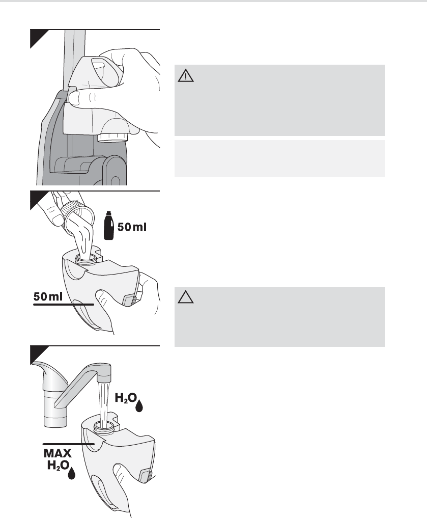 5. Giet 50 ml reinigingsmiddel voorzichtig en onverdund in