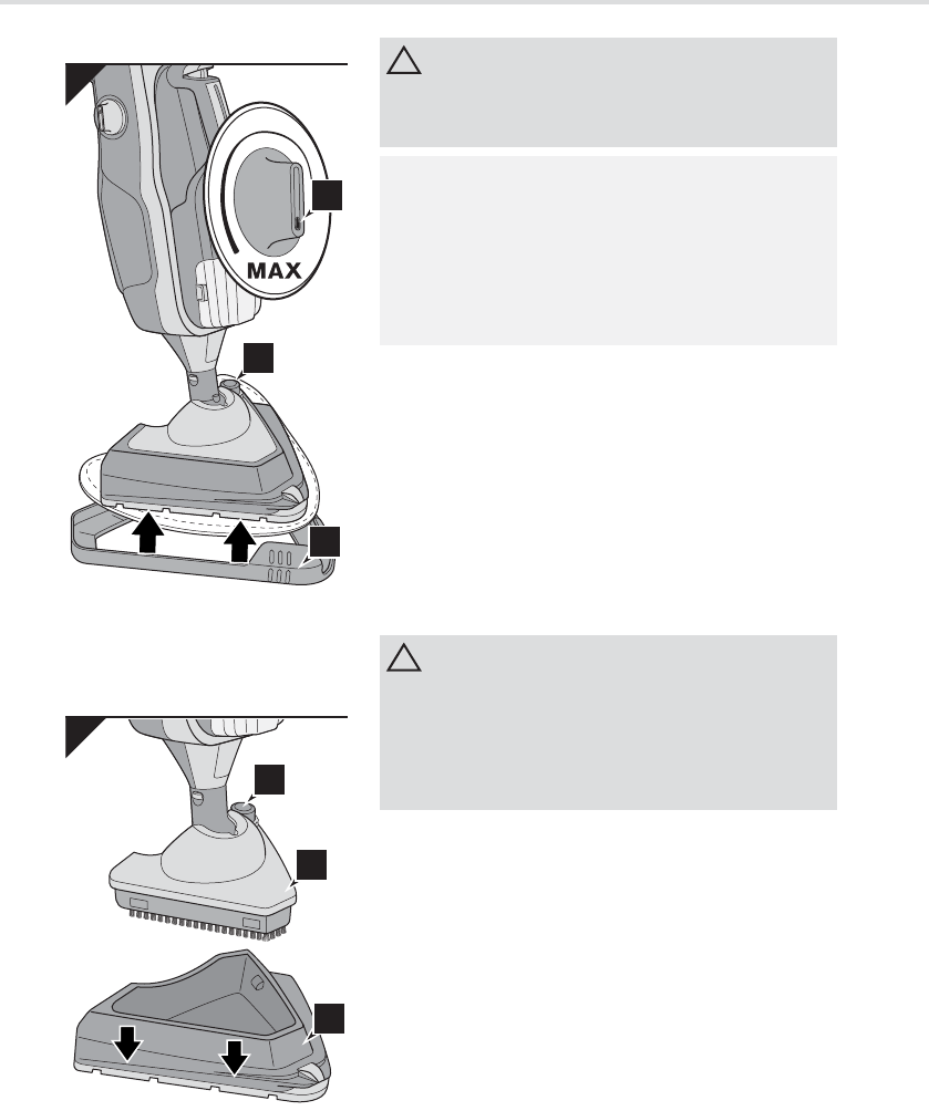 1. Leg de glijzool voor tapijt (afb. 16/1) onder de stoomvoet