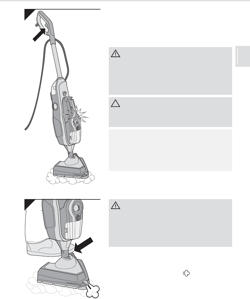 10. Press the steam button (Fig. 14/arrow) on the handle