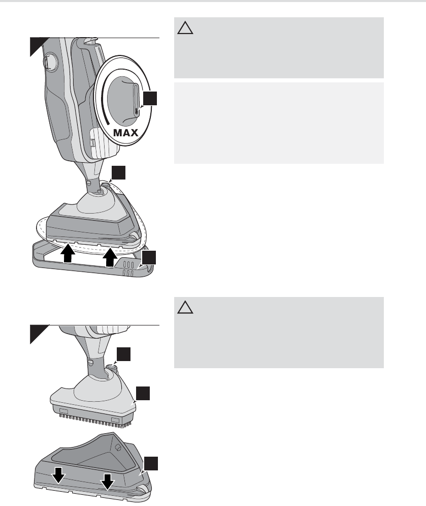 1. Place the carpet glider base (Fig. 16/1) under the steam