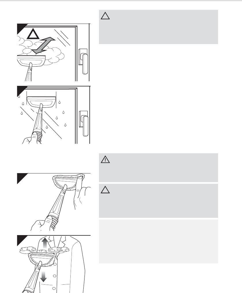 Danger d'échaudures! Ne dirigez jamais le jet de vapeur