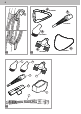 SE 94 Förberedelser Lära känna apparaten Bild 1 : 1 Handtag; 2 Lossningsknapp; 3 Knapp Manuell ångmopp (syns inte); 4 Ångvred; 5 Tanklock; 6 Ångfot; 7 Mattglidare; 8 Vattentank; 9 Driftindikator; 10 Apparatkropp; 11 Handtag Manuell ångmopp; 12 Mätbägare (tillval); 13 Snabblås Kabel; 14 Kabel; 15 Lossningsknapp Ångfot; 16 Snabblås Kabel Tillbehör (tillval): Bild 24: 1 Plastborste; 2 Metallborste; 3 Fogborste; 4 Textiluppfräschare; 5 Skviss; 6 Jetmunstycke; 7 Förlängningsslang Uppackning och montering 1 Ko