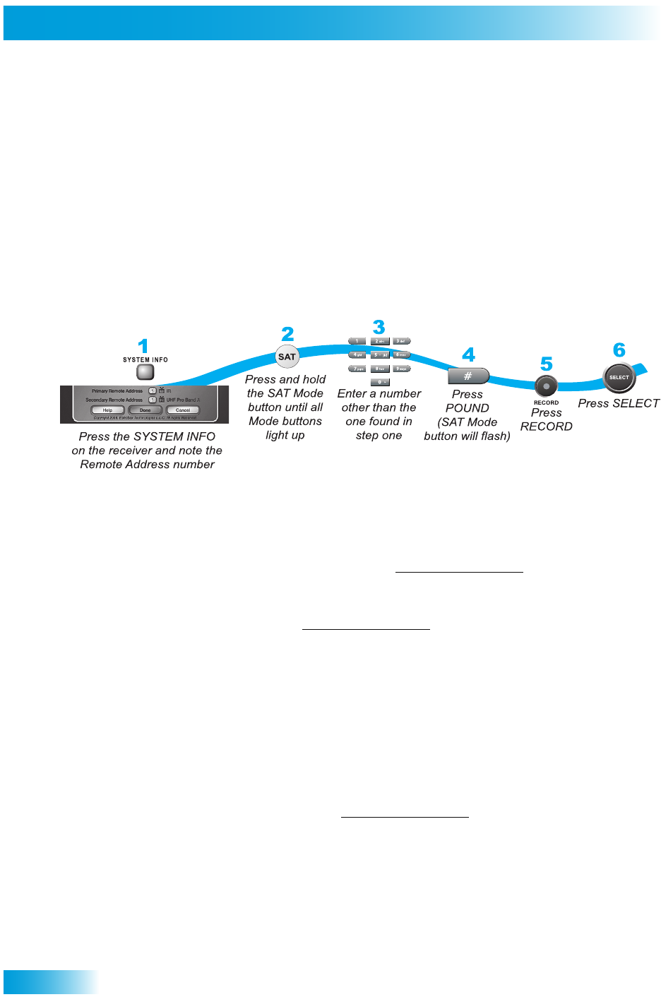 2 Press and hold SAT on your remote control for about three seconds, until all of the mode