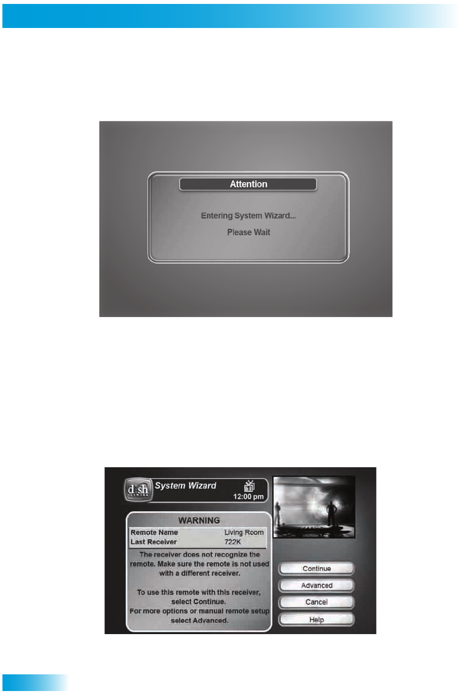 If you select Continue, the wizard tries to configure your receiver and remote control to