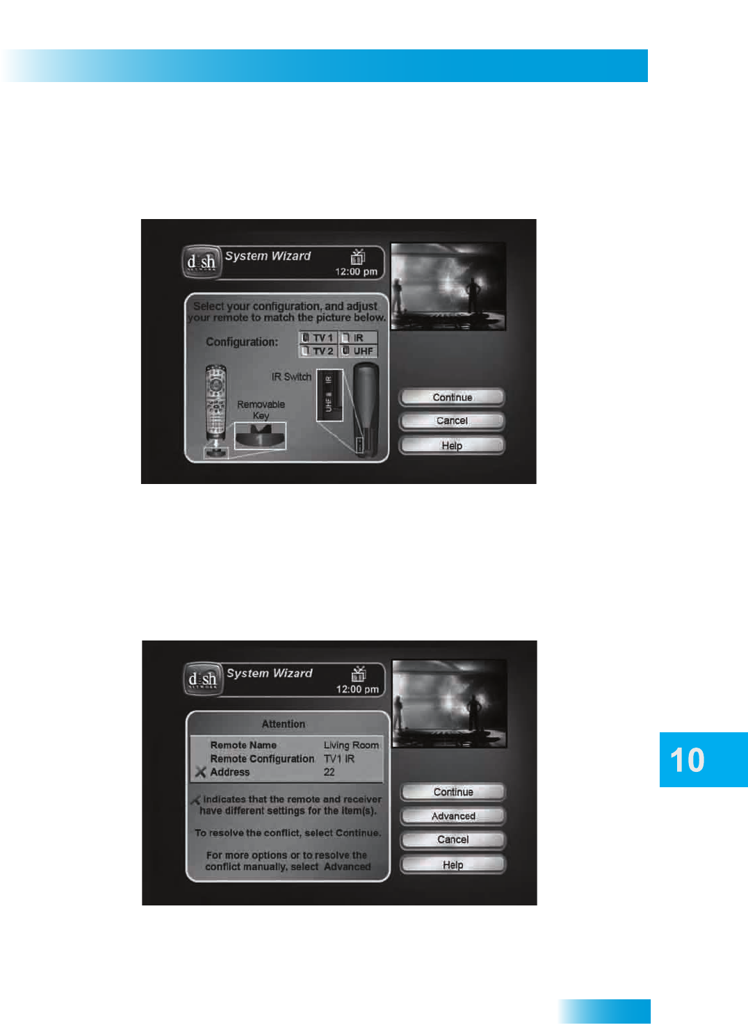 You may also see a screen noting that your remote control is not set to the same address