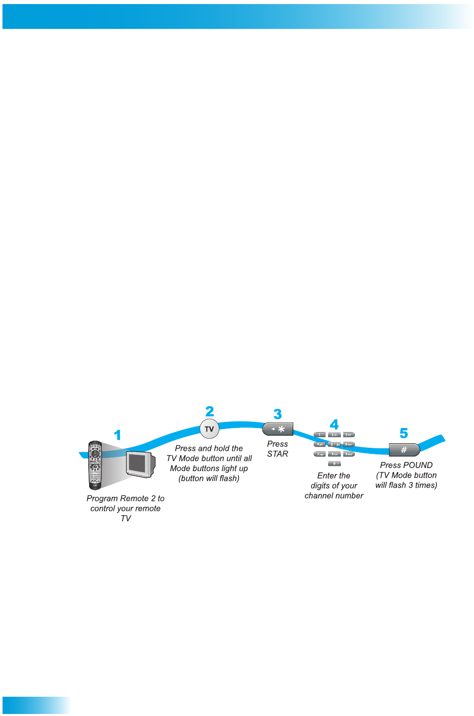 Note: The remote must be programmed to control the TV (and VCR, if applicable) for