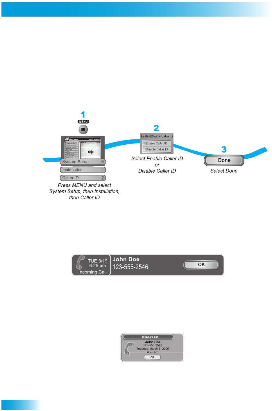 Caller ID displays on your TV if you subscribe to Caller ID from your local phone company.