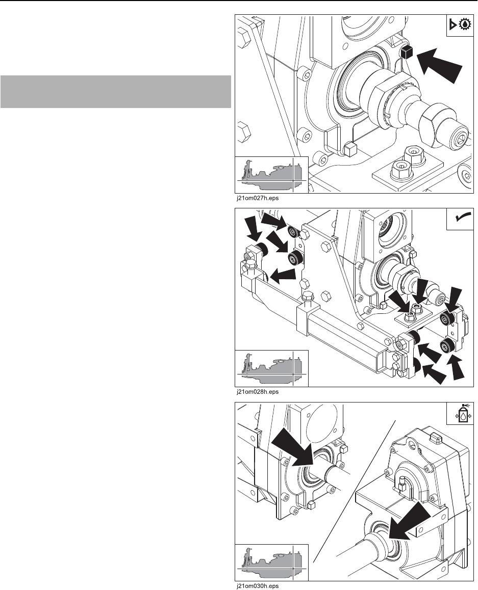Inspect thrust rollers every 50 hours. Clean or