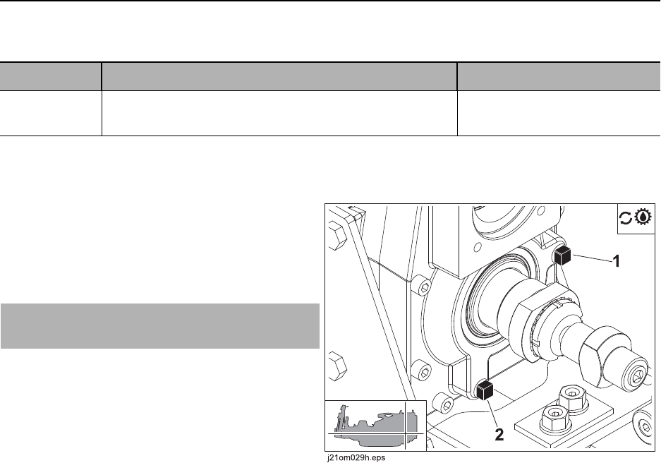 Drain oil at gearbox oil drain (2) every 1000 hours.