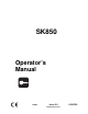 SK850 Operator’s Manual Contents - 9 Contents Overview 1 machine serial number, information about the type of work this machine is designed to perform, basic machine components, and how to use this manual Foreword 7 part number, revision level, and publication date of this manual, and factory contact information Safety 11 machine safety alerts and emergency procedures Controls 21 machine controls, gauges, and indicators and how to use them Prepare 39 procedures for inspecting and classifying