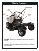 Safety Features Steering Neutral Switches Seat Switch PTO On/Off Parking Brake Parking Brake - The parking brake should be engaged whenever the mower is stationary and unoccupied. Safety Interlock System - The mower has a system of safety interlock switches that will not allow the mower to start unless the steering speed control levers are in the neutral lock position, the parking brake is set and the deck engaging switch (PTO) is off.