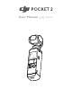 DJI Pocket 2 User Manual Introduction DJI Pocket 2 is a handheld gimbal camera that combines mobility and stability in one device. It shoots sharp 64 MP photos and stable video at up to 4K 60fps. The onboard touchscreen displays a live view from the camera and can control camera and gimbal movements. Create the perfect shot with intelligent modes such as ActiceTrack, Zoom, Panorama, Timelapse, and HDR Video and enjoy high quality sound recording with four microphones that boast wind noise reduction.