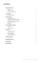 Contents 2 Using this Manual Legend 2 Before You Begin 2 Download the Ronin App 2 4 Introduction 5 DJI RSC 2 Diagram 6 Getting Started Unfolding the Gimbal 6 Attaching the Extended Grip/Tripod 6 Unlocking and Locking the Gimbal 7 Mounting the Camera 7 Balancing 9 12 Grip and Built-In Battery Charging 12 Safety Guidelines 12 16 Operations Activating DJI RSC 2 16 Screen Operation 16 Ronin App Settings 19 Image Transmission 27 Operation Modes 28 Updating Firmware 29 Mainten