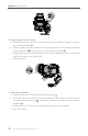 DJI RSC 2 User Manual 1 2 2. Balancing Depth for the Tilt Axis a. Rotate the tilt axis so that the camera lens is pointing forward. Toggle the lever to the unlocked position 1 . b. Check to make sure the camera is not front or back-heavy. If front-heavy, move the camera backward 2 . If back-heavy, move the camera forward 2 . c. Toggle the lever to the locked position. The tilt axis is balanced when the camera is steady while tilted up or down by 45°. d. Lock the tilt axis. 1 2 3.