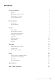 Contents Safety at a Glance 2 Glossary 4 Before You Begin 4 Disclaimer and Warning 5 Pre-Flight Checklist 6 Individual Parts 7 Regarding Genuine and Functional Parts 7 Camera 7 Propulsion System 7 Flight Batteries 8 Tello App 10 Firmware 11 Product Care 11 Flight Condition Requirements 12 Weather Conditions and Surrounding Environment 12 Interference with Communications 12 Operating the Aircraft Responsibly 13 Flight Modes, Functions, and Warnings 14 Flight Modes 14 Low