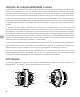 Abre as congurações de curso da lente e alterna entre foco, controle de abertura ou zoom,