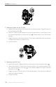 DJI RS 2 User Manual 1 2 4. Balancing the Pan Axis a. Unlock the pan axis. Toggle the lever on the pan arm to the unlocked position 1 . b. While holding the grip, tilt DJI RS 2 forward, and rotate the pan arm until parallel with you. c. Check the movement of the pan axis. If the camera lens rotates to the left, push the pan axis to the right 2 . If the camera lens rotates to the right, push the pan axis to the left 2 . d. Toggle the lever on the pan arm to the locked position.