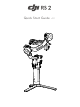 DJI RS 2 Quick Start Guide DJI RS 2 Overview EN 1 2 14 13 25 24 23 15 16 12 8 3 4 5 6 7 9 22 21 17 20 19 18 10 11 1. Tilt Lock 13. Lower Quick-Release Plate 2. Tilt Motor 14. Upper Quick-Release Plate 3. Pan Lock 15. Roll Motor 4. Pan Motor 16. Roll Lock 5. Touchscreen 17. Grip Lever/Safety Button 6. Ronin Series Accessories (RSA)/ NATO Ports 18. Battery Level Indicators 7. Power Button 20. Power Port (USB-C) 8. Camera Control Button 9. M Button 10.