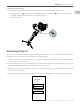 RONIN-S Quick Start Guide 2. Balancing Depth for the Tilt Axis EN a. Rotate the tilt axis so that the camera lens is pointing forward. Hold the tilt motor to check if the camera is top or bottom heavy. b. Toggle the lever 1 to the unlocked position. Adjust the camera balance 2 until the camera stays still when rotating the tilt axis 45° upwards or downwards. c. Toggle the lever 3 to the locked position. 1 3 2 3. Balancing the Roll Axis a.