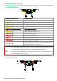 1.3 LED Fluganzeige Beschreibung 1. Die LED Fluganzeige zeigt den aktuellen Betriebsstatus des Fluggerätes an. Direkt nach dem Einschalten leuchten die LED Anzeigen auf. LED flight indicators Fluggerät im Normalbetrieb Beschreibung Selbsttest nach Einschalten Aufwärmphase (Fluggerät kann nicht gestartet werden) Flugbereit Flugbereit (ohne GPS) Fluggerät in fehlerhaftem Betrieb Warnungen und Fehler Signal zur Fernsteuerung verloren 1. Unterspannungswarnung 2.