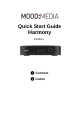 Harmony A QUICK LOOK AT… THE FRONT Power, Ethernet and Play Status Lights Remote Control Sensor THE BACK Audio Outputs Digital | Analog USB Ports Ethernet Port Power Adapter Input Digital | Analog Video Outputs NOTE: Your Harmony device may be configured for music only. A video display is not necessary to complete an audio only installation. Please see the full Harmony User Guide in the Client Support Hub at moodmedia.com for more detailed operating information.