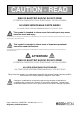CAUTION - READ ME RISK OF ELECTRIC SHOCK! DO NOT OPEN! ATTENTION: RISQUE DE CHOC ÉLECTRIQUE - NE PAS OUVRIR! NO USER SERVICEABLE PARTS INSIDE! AU CUNE PIÈCE INTERNE RÉPARABLEPAR L’UTILISAT EUR! This symbol is intended to inform users that certain parts may cause electrical shock and injury. Ce symbole est destiné à informer les utilisateurs que les pieces internes peuvent provoquer un choc électrique et des blessures.
