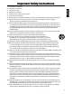 Important Safety Instructions 9) 10) 11) 12) Read these instructions. Keep these instructions. Heed all warnings. Follow all instructions. Do not use this apparatus near water. Clean only with dry cloth. Do not block any ventilation openings. Install in accordance with manufacturer’s instructions. Do not install near any heat sources such as radiators, heat registers, stoves, or other apparatus (including amplifiers) that produce heat.