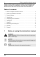 S4 Notes on using the instruction manual Please read this instruction manual carefully before installation and first use, and store it in a safe place. If you pass on the product to another person, hand over this instruction manual along with it. Table of contents 1 Notes on using the instruction manual. . . . . . . . . . . . . . . . . . . . . . . . 3 2 Safety and installation instructions. . . . . . . . . . . . . . . . . . . . . . . . . . . 4 3 Scope of delivery . . . . . . . . . . . . . . . . . .