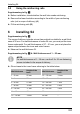 S4 Installing S4 Supplementary to fig. 5 B: Wall thicknesses of 27 – 53 mm: ➤ Select the spacer strips (1) by referring to the table below. Wall thickness Height of the spacer strips Fastening screws (Not in scope of delivery) 27 – 28 mm 5 mm 3.9 x 30 mm 29 – 30 mm 7 mm 3.9 x 30 mm 31 – 32 mm 9 mm 3.9 x 30 mm 33 – 34 mm 11 mm 3.9 x 30 mm 35 – 36 mm 13 mm 3.9 x 30 mm 37 – 38 mm 15 mm 3.9 x 40 mm 39 – 40 mm 17 mm 3.9 x 40 mm 41 – 42 mm 19 mm 3.9 x 40 mm 43 – 44 mm 21 mm 3.