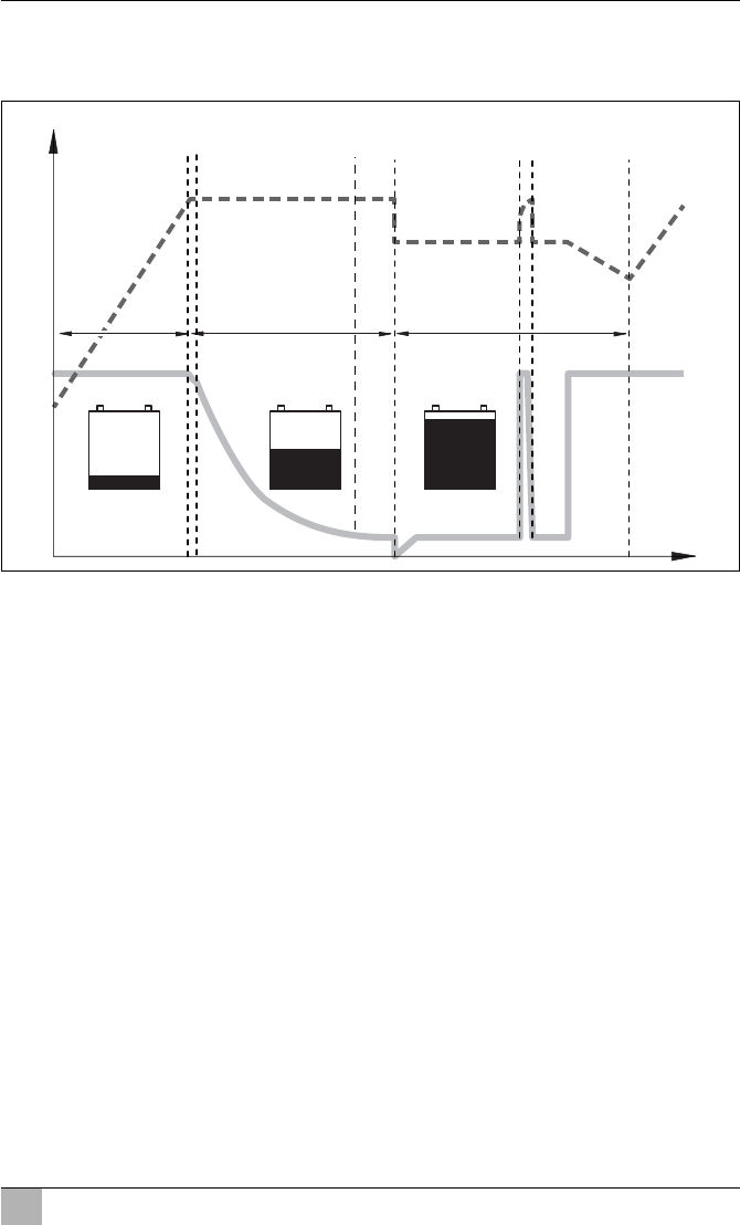 (100 % laddström) tills batterispänningen når laddspänningen. När denna