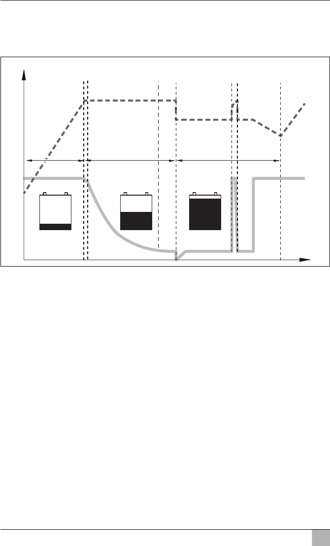 Na začátku procesu nabíjení je prázdná baterie nabíjena konstantním prou-