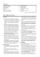 Spin Speed Maximum 1000 rpm 1) Connect the water inlet hose to a water tap with a 3/4'' thread. Consumption values Programme Energy consumption (KWh) Water consumption (litres) Programme duration (Minutes) White Cottons 90° 1.43 44 ~ 126 Cottons 60° 0.78 44 ~ 107 Cotton + ECO option 60° 1) 0.57 39 ~ 130 Synthetic 60° 0.57 42 ~ 82 Synthetic 40° 0.26 42 ~ 67 Delicate 40° 0.38 45 ~ 61 Wool 30° 0.20 45 ~ 45 Rinses 0.