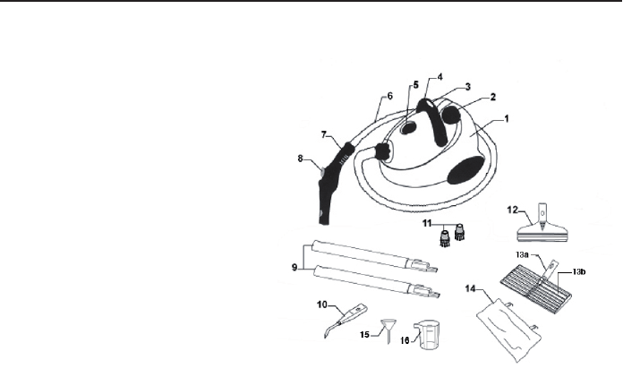 HOOFDONDERDELEN VAN DE STOOMREINIGER