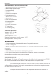 DO230SR PARTS AND SPECIFICATIONS 1. Control button on handle 2. Red indicator light/green indicator light 3. Safety filler cap 4. Handle 5. Flexible steam tube 6. Extension tubes 7. Floor brush 8. 2 detail brushes 9. Squeegee 10. Concentrator 11. Shoulder strap 12. Angle adaptor 13. Funnel 14. Steam regulation Technical specifications Voltage : 230V 50Hz Wattage : 2000 Watts Water capacity : 1.2 litres Max.