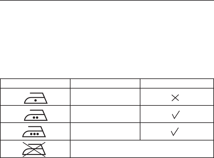 Ne pas repasser les articles comportant ce symbole!