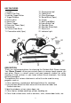 KEY FEATURES 1. Handle 2. Safety Filler Cap 3. Locking Trigger Button 4. Trigger Release 5. Deluxe Hose 6. Steam Gun 7. Steam Trigger 8. Extension Tubes (2pcs) 9. Connector 10. Deluxe Floor Brush 11. Floor cotton cloth (2pcs) 12. Concentrator tool 13. Fabric Brush 14. Glass Squeegee 15. Round Brush (2pcs) 16. Funnel 17. Refill Cup(500ml) 18.Fabric Brush Pad 19. Shoulder Strap 20. Shoulder Strap Hook 21. Steam unit 22.