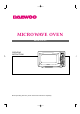 SPECIFICATIONS MODEL KOR-1A1G POWER SUPPLY MICROWAVE 120V AC 60 Hz SINGLE PHASE WITH GROUNDING POWER CONSUMPTION 1400 W OUTPUT POWER 1000 W FREQUENCY 2450 MHz OUTSIDE DIMENSIONS (W X H X D) 539 x 300 x 406 mm (21.2 x 11.8 x 16.0 in.) CAVITY DIMENSIONS (W X H X D) 354 x 228 x 373 mm (13.9 x 9.0 x 14.7 in.) NET WEIGHT 15.5KG (34.2 lbs.) TIMER 16.0KG (35.3 lbs.) 99 min. 99 sec. * Specifications are subject to change without notice. 539 406 M/W M/W TIMER LOCK lb 1.Bread 2.Soup 3.