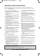 IMPORTANT SAFETY INSTRUCTIONS When using electrical appliances, basic safety precautions should be followed, including the following: WARNING - To reduce the risk of burns, electric shock, fire, injury to persons or exposure to excessive microwave energy: 11. Read all instructions before using the appliance. d) Do not use the cavity for storage purposes. Do not leave paper products, cooking utensils, or food in the cavity when not in use. 12.