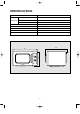 FEATURES DIAGRAM 3 5 4 7 0 1 8 9 2 6 1 Safety Interlock System. 2 Door Viewing Screen - Allows viewing of food. The screen is designed so that light can pass through, but not the microwave. 3 Door Hook - When door is closed, it will automatically shut off. If the door is opened while the oven is operating, magnetron will immediately stop operating. 4 Oven Cavity. 5 Door Seal - Door seal maintains the microwave energy within the oven cavity and prevents microwave leakage.