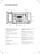 FEATURES DIAGRAM 1 2 3 4 5 6 7 w q 0 9 8 8 Waveguide cover - Protects the microwave outlet from splashes of cooking foods. 1 Door latch - When the door is closed, it will automatically shut off. If the door is opened while the oven is operating, the magnetron will automatically shut off. 9 Roller guide - This must always be used for cooking together with the glass cooking tray. 2 Door seal - The door seal surfaces prevent microwaves escaping from the oven cavity.