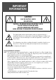 IMPORTANT INFORMATION CAUTION RISK OF ELECTRIC SHOCK DO NOT OPEN CAUTION : TO REDUCE THE RISK OF ELECTRIC SHOCK, DO NOT REMOVE COVER (OR BACK) NO USER-SERVICEABLE PARTS INSIDE. REFER SERVICING TO QUALIFIED SERVICE PERSONNEL. The lightning flash with arrowhead symbol, within an equilateral triangle, is intended to alert the user to the presence of uninsulated “dangerous voltage” within the product’s enclosure that may be of sufficient magnitude to constitute a risk electric shock.
