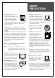 SAFETY PRECAUTIONS • As a measure of additional protection of this television equipment, unplug this apparatus during lightning storms or when unused for long periods of time. This will prevent the equipment from being damaged by lightning and power-line surges. • Outside antenna system should not be located in the vicinity of overhead power lines or other electric or power circuits including the place where it can fall onto such power lines or circuits.