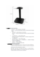 一.功能介绍 Function Introduction: 1.“指示灯①”→提供手机充电座工作信号指示。 "LED①" → provide working signal indication of mobile phone charging stand. 2. “指示灯②”→提供耳机充电座工作信号指示。 "LED②" → Provide working signal indication of earphone charging stand. 3. “手机无线充电座”→给手机无线充电功能。 "Mobile phone Wireless Charging Seat" → Wireless charging function for mobile phone. 4. “耳机无线充电座”→给耳机无线充电功能。 "Wireless Charging Seat for Headphones" → Wireless charging function for headphones. 5. “电源-DC”→提供 DC 电源输入。 "Power-dc" → Provide DC power input.