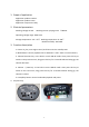 1. Scope of application Application product number: Application product name: Application component: body 2. Electrical parameters Working voltage: DC12V Working current: playing music ≤800mA Operating voltage range: DC8V~14V Storage temperature: -20~ +70℃ Working temperature: 0~+60℃ Relative humidity: 45%~85% 3. Function description 1. Power on, play a car engine sound, and then enter the standby state. 2. Mode button: control playback source: Bluetooth—USB—built-in music and story. 3. Volume-\Previous