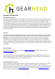 WARRANTY INFORMATION Limited Lifetime Warranty Gear Head, LLC warrants that this product shall be free from defects in materials and workmanship for the reasonable lifetime of the product. If the product is defective, Gear Head, LLC’s sole obligation under this warranty shall be at its election, subject to the terms of this warranty, to repair or replace any parts deemed defective. This warranty is for the exclusive benefit of the original purchaser and is not assignable or transferable.