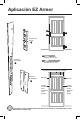Aplicación EZ Armor A B C Protector de puerta B C D Protector para jamba A E Tornillos de 2 ½” (4) Tornillos de 3 ½” (17) Hoja de la puerta Reborde Bisagra Protector de bisagras C Reborde Jamba del lado de la cerradura de la puerta Reborde Jamba del lado de las bisagras de la puerta ¿Preguntas? Llame al Departamento de Servicio al Cliente al 1-888-582-2294 o visite www.armorconcepts.