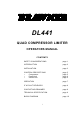 DL441 QUAD COMPRESSOR LIMITER OPERATORS MANUAL CONTENTS SAFETY CONSIDERATIONS page 1 INTRODUCTION page 2 INSTALLATION page 3 CONTROL DESCRIPTIONS C Compressor C Peak Limit C Stereo Link page page page page OPERATION page 7 IF A FAULT DEVELOPS page 8 CONTACTING DRAWMER page 8 TECHNICAL SPECIFICATION page 9 BLOCK DIAGRAM page 10 i 5 5 6 6