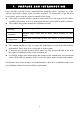 TABLE OF CONTENTS 1. PREFACE AND INTRODUCTION ……..………………………………… 3 2. SAFETY NOTICE…………………………………………………………...…. 4 2.1 Before driving 2.2 While driving 2.3 Labeling 2.4 EMI 3. PARTS INTRODUCTION……………..……………….. ……………………. 9 4. OPERATION………………………………………………………………….... 10 4.1 Control panel 4.2 How to operate your scooter 4.3 How to set to freewheel mode 5. DRIVING ON THE ROAD…………………………………………………….. 15 6. BATTERY CHARGING AND CARE……………………………………..... 16 6.1 Charging the battery 6.2 Battery 6.