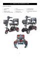 3. PARTS INTRODUCTION PARTS DESCRIPTION 1. 2. 3. 4. Control panel Basket Charger Socket Tiller Adjustment Knob 5. 6. 7. 8. Seat Seat Rotation Lever Battery Pack Freewheel Lever 9 9. Anti-tip wheels 10. Seat Post Knob 11.
