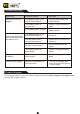 Trouble Shooting Symptom Possible cause Solution Cannot turn on the goggle The battery pack is not connected properly Check battery and wire connections The battery pack is discharged Install a charged battery pack The battery pack is dead Install a new and charged battery pack The battery pack is not connected properly Install the battery pack correctly The AV cable is not connected properly Install the AV connection correctly The AV cable is dead Get a replacement AV cable The battery pack